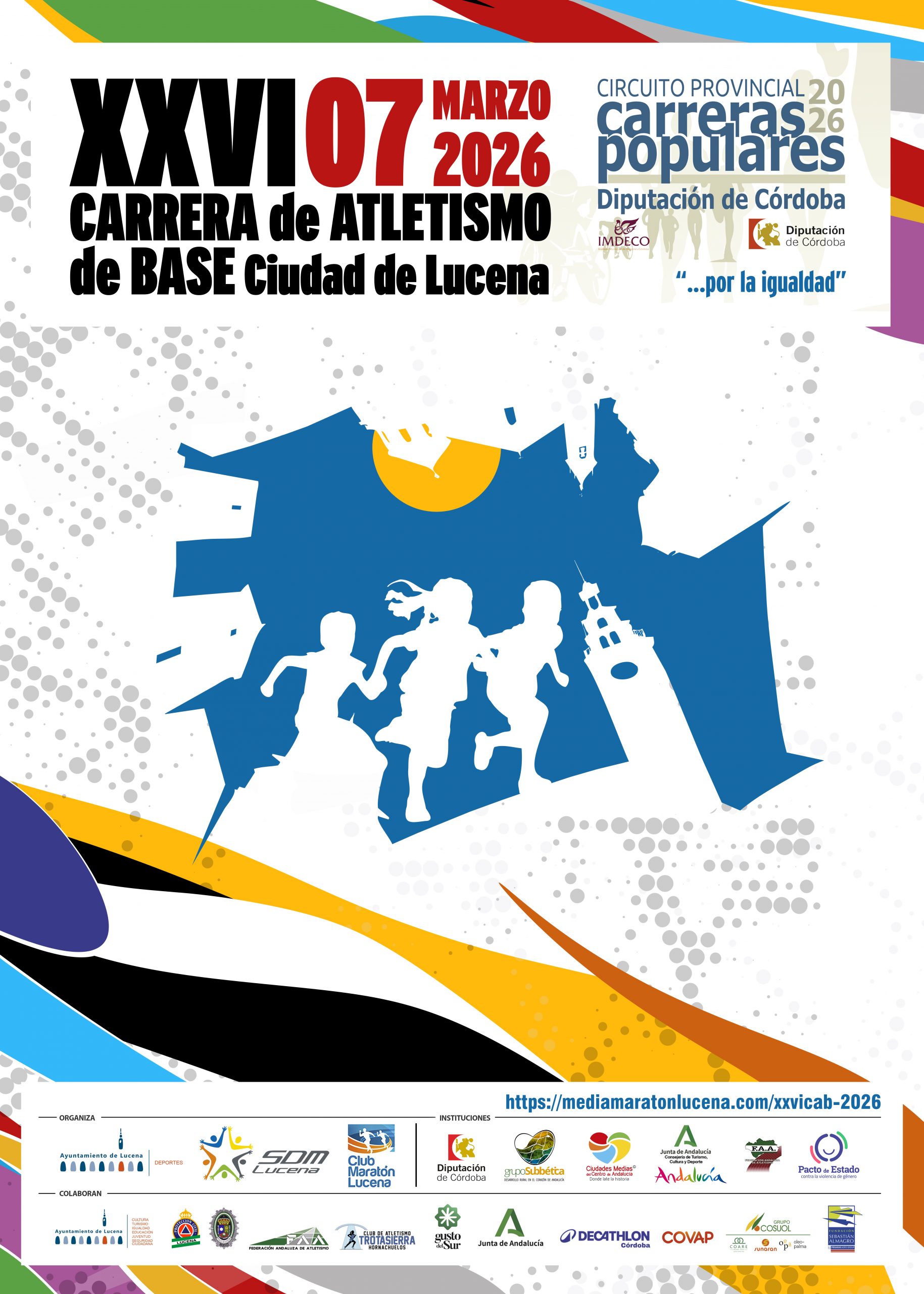 - La carrera de atletismo para categorías base se celebrará el sábado 7 de marzo de 2026, con salidas a partir de las 10,00 horas desde la pista de atletismo de la Ciudad Deportiva de Lucena.